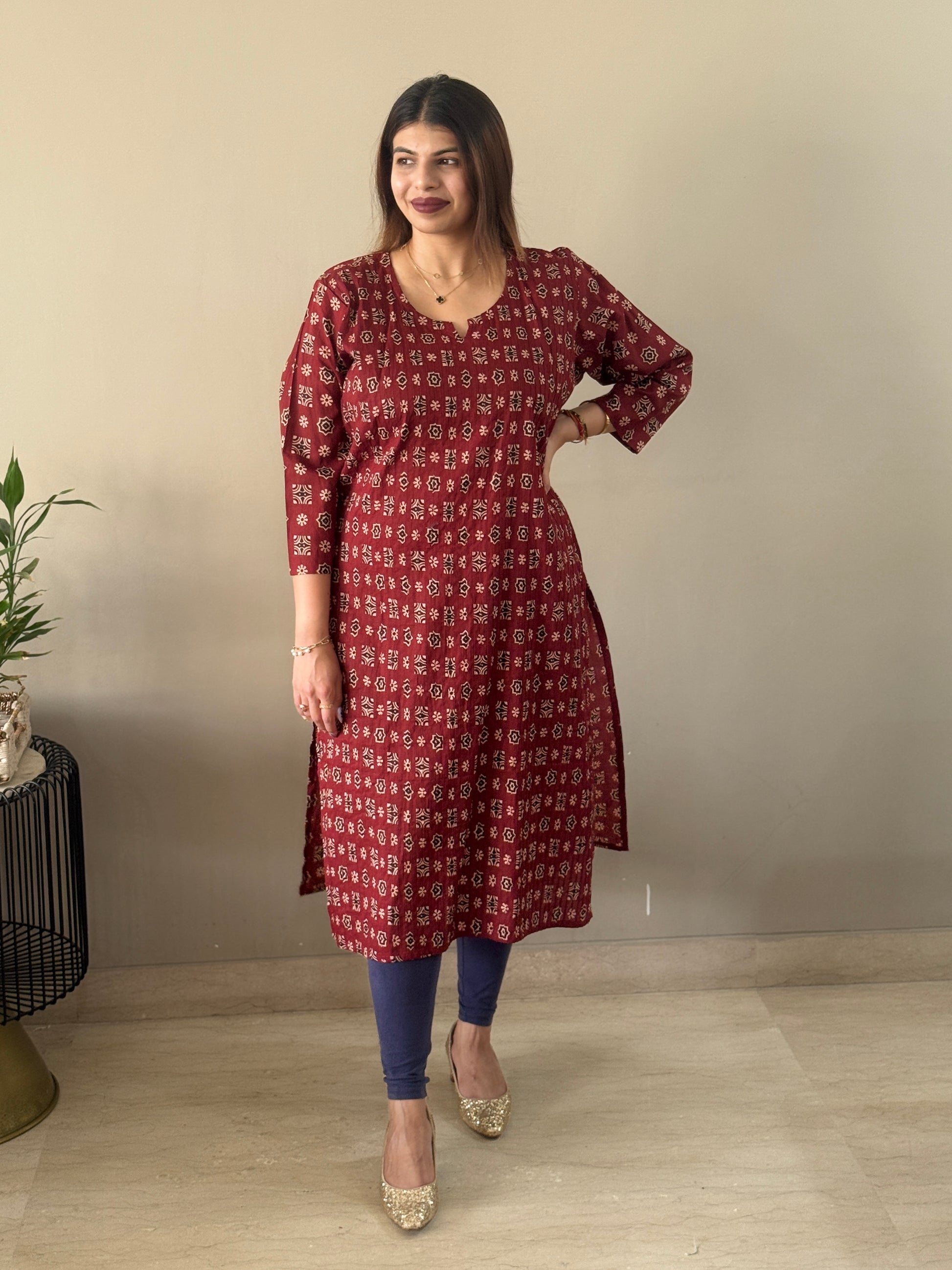 A stylish printex kurti featuring floral design. The modern print adds a contemporary touch, making this kurti a perfect choice for those who love to blend traditional style with a unique, fashion-forward edge. Ideal for casual wear or semi-formal occasions, this kurti offers a perfect balance of comfort and eye-catching design.